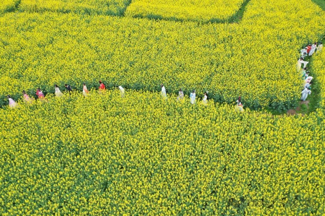 花田间有很多条笔直的小路,还可以约上三五好友在这里, 放风筝、遛娃、晒太阳 ,田野广袤,目之所及皆是一片美好。