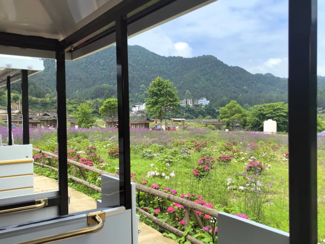 “怀恩堡花园主要种植马鞭草、绣球花、向日葵等花卉为主,目前园区的百分之六七十的花已开,非常适合邀请家人和朋友一起来游玩拍照打卡。
