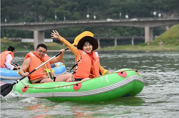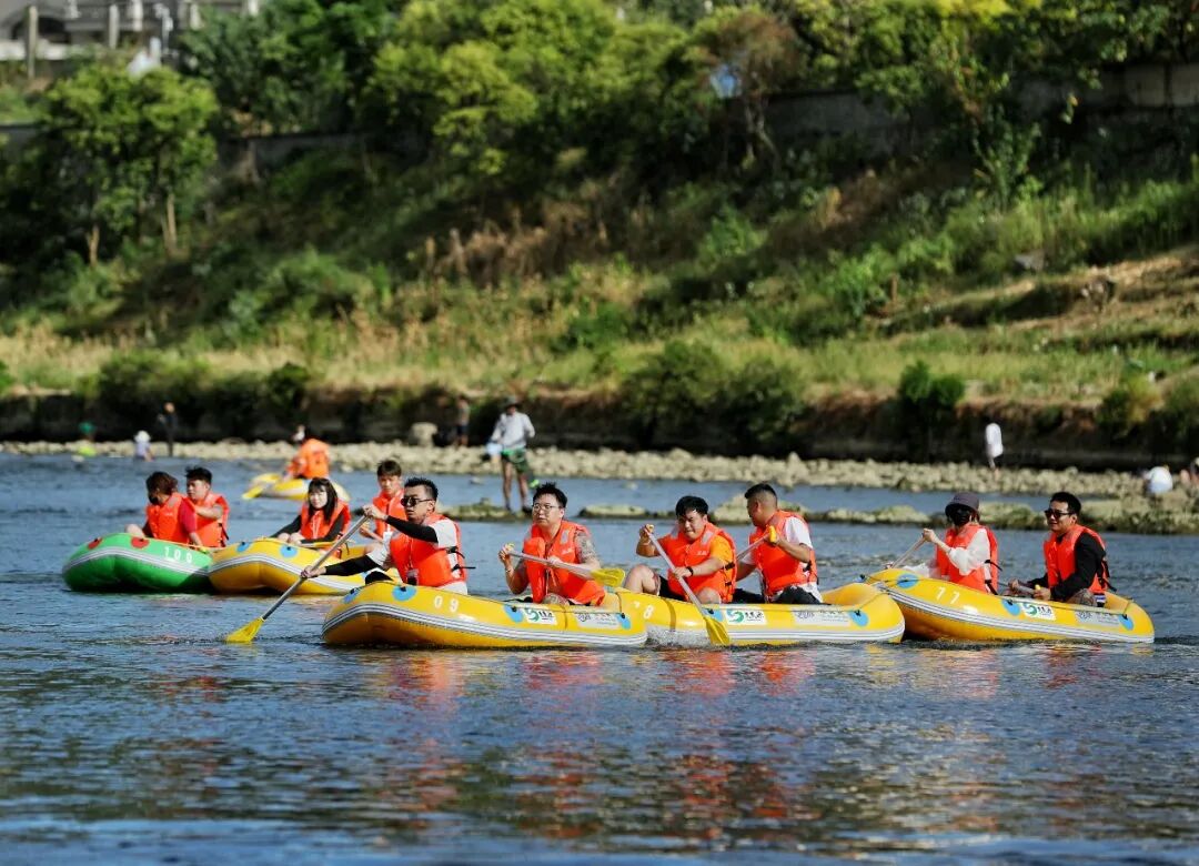 在清水江上尽情嬉戏享受着夏日里难得的清凉与欢乐,现场氛围热烈,欢笑声、欢呼声此起彼伏,与静静流淌的清水江相映成趣。