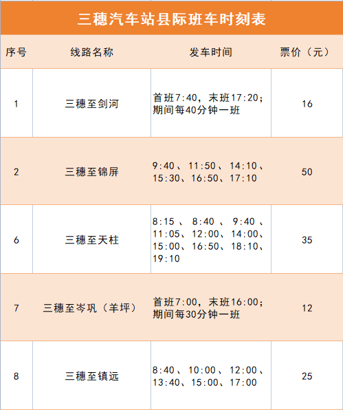 三穗县公交车信息