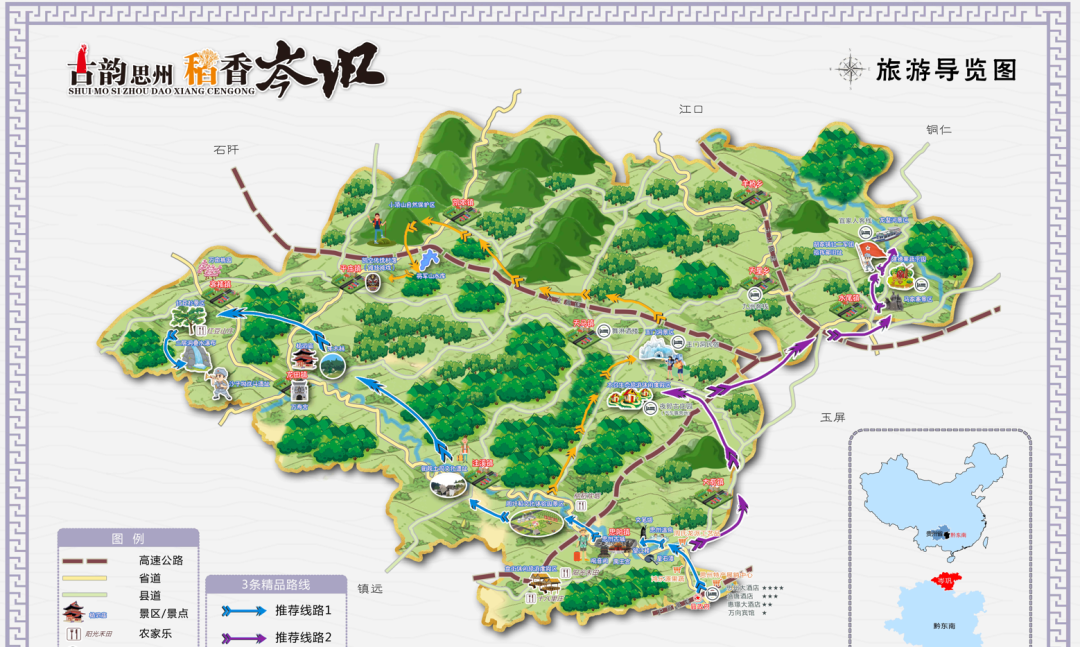 游玩推荐:龙鳌河景区、红豆杉景区、玉门洞景区、思州石砚传承基地、木召生态休闲度假区、马家寨景区