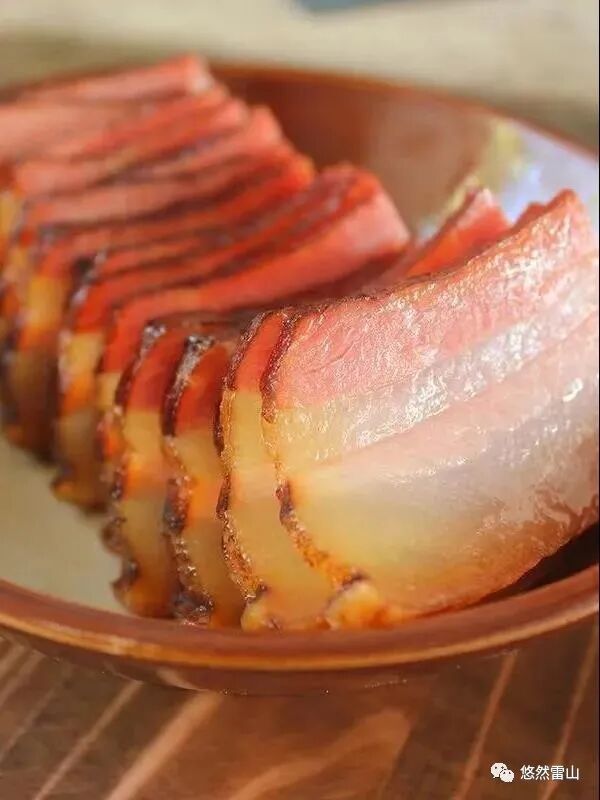 熏制好的腊肉色泽艳丽、黄里透红