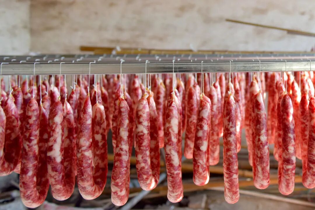 然后悬挂晾干肉条水分